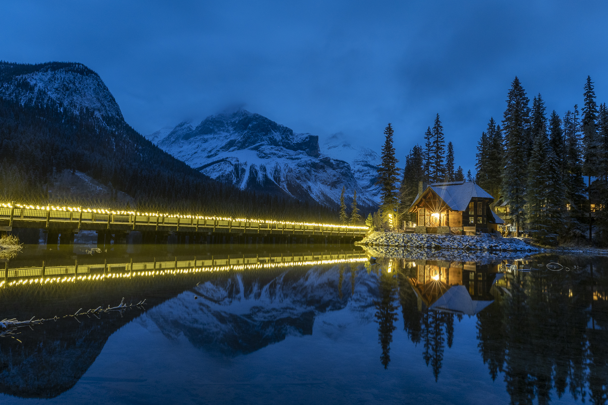 Wow can’t believe it’s our last day! Another early morning – we set off for a blue hour/sunrise shoot at Emerald Lake Lodge. This has been on my bucket list for so long. I was so thrilled to learn we would be going there. The lake was not frozen and yes it there is an emerald green colour to the water.